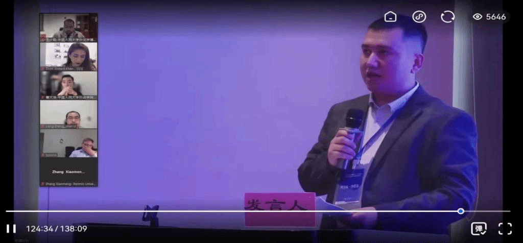 现为中国人民大学国学研究院教授、来自俄罗斯的索罗宁(Solonin Kirill)从文化史的角度阐述了人权的文化属性,指出对个人尊严的尊重是人权的基本内涵,新疆是不同外来文化传入中原的桥梁,也是中原文明往西方传播的管道,是一个人人和谐相处的地方,其特色就是保证不同民族,不同文化和宗教和谐发展。他同时指出,新疆学术界培养了一批优秀的青年研究者,教育的可及性是人幸福生活关键的条件,也是人权的基本要素之一,这从一个侧面也反映了新疆文化教育权利的发展。