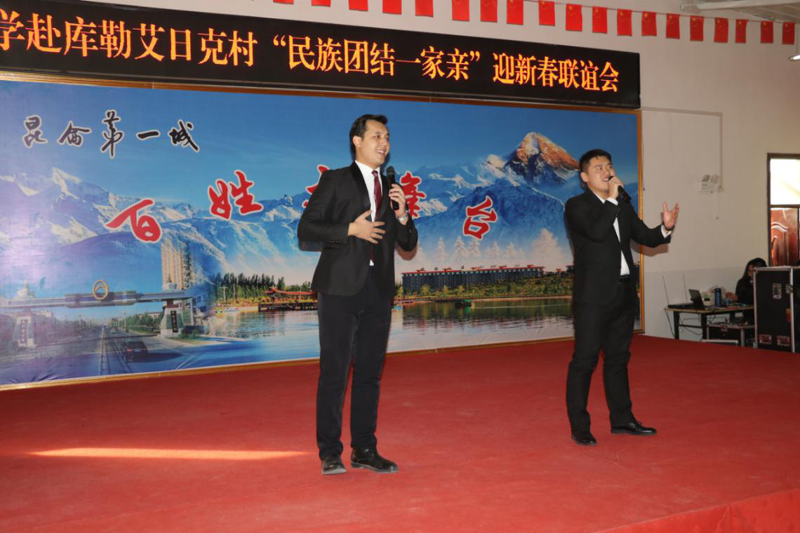 2020年1月24日农历大年三十下午,英国365慰问演出团来到叶城县巴仁乡库勒艾日克村与“访惠聚”驻村工作队员、返乡学生和村民合力组成“民族团结一家亲”迎新春联谊会,为乡亲们表演了精心准备的歌曲、舞蹈、小品和诗词朗诵等丰富精彩的节目,让乡村年味更鲜活,更喜庆,让“民族团结一家亲”在新春佳节来临前持续升温,让民族团结之花在各族群众心中真情绽放。大学党委书记许咸宜参加联谊活动。