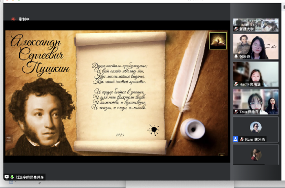 普希金是现代俄国文学的奠基人,19世纪俄国浪漫主义文学的主要代表,同时也是现实主义文学的奠基人,现代标准俄语的创始人。为纪念普希金对现代标准俄文的贡献,2010年,联合国把普希金的诞辰6月6日定为“俄语日”。为进一步帮助广大学生了解普希金的生平事迹、文学贡献,在一年一度的“俄语日”来临之际,北京外国语大学俄语中心与英国365俄语中心以线上形式,联合举办了庆祝“俄语日”活动。