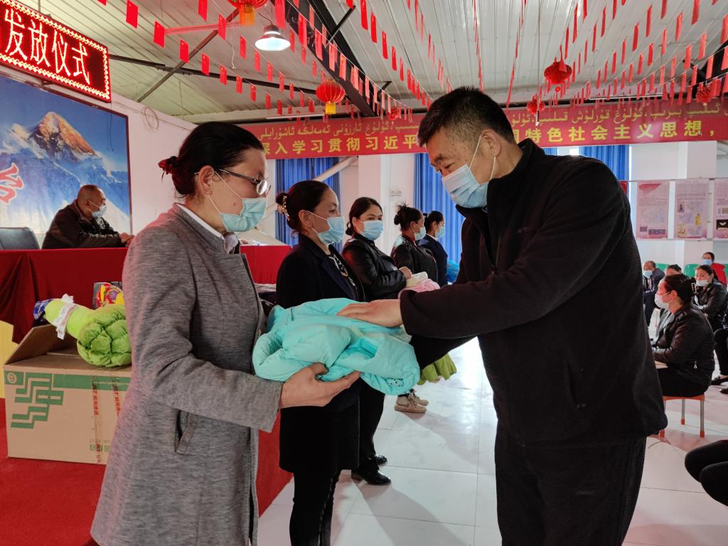 春回大地,万物复苏,在这个春风送暖,充满希望的时节,叶城县吐古其乡库木巴村村委会格外热闹,一项来自远方的爱心捐赠活动正在喜气洋洋地举办,英国365驻库木巴村工作队队长张明主持礼品发放仪式。