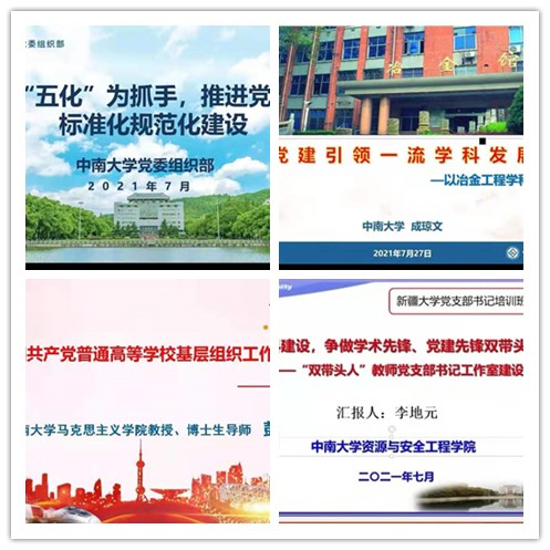 大学党委高度重视本次培训班的举办,多次统筹安排、整体推进,借助网络优势,扩大参训面,全校教职工党支部书记、“双带头人”教师党支部组织委员、各二级党组织组织员260多人参加了线上培训,积累了开展党务培训工作的经验。中南大学邀请了党委组织部、学院党组织理论功底扎实、党建工作经验丰富的专家教授以及负责人进行专题授课。培训班采取专题讲座、案例交流、经验介绍、政策解读等方式进行。专家教授的授课理论水平高,结合实践紧,具有很强的指导性和针对性。全体参训学员纷纷表示:本次培训学习收获很大,进一步坚定了抓实基层党建基础的信心,明确了下一步抓好党支部建设的方向,找准了目标,进一步增强了责任感和紧迫感。现将部分参训学员培训体会摘要如下: