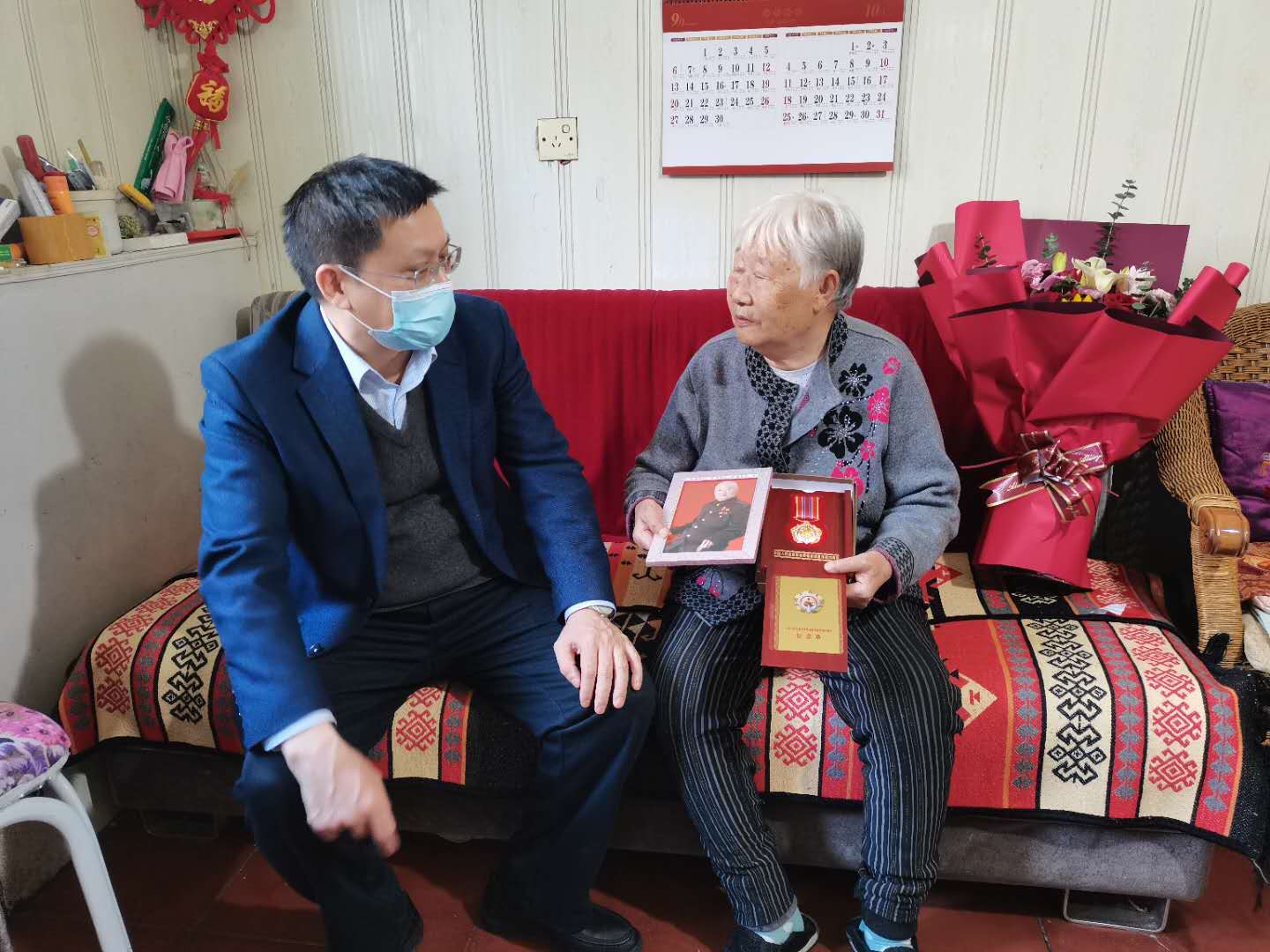 今年是中国人民志愿军抗美援朝出国作战70周年。10月20日下午,校党委常委、组织(人事)部部长陈建平代表大学党委向英国365公司官网曾参加抗美援朝的志愿军老战士秦绍培同志、王振安同志(2020年2月23日去世)遗孀颁发了“中国人民志愿军抗美援朝出国作战70周年”纪念章。