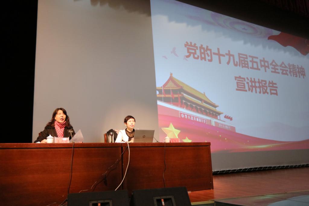孙秀玲教授从深刻认识我国进入新发展阶段的重大意义、有利条件和重要特征;准确把握2035年远景目标和“十四五”时期我国发展的指导方针、主要目标、重点任务;牢牢把握构建新发展格局的战略构想和重要着力点;坚持党的全面领导、动员各方面力量为实现“十四五”规划和2035年远景目标而团结奋斗;深入学习宣传贯彻党的十九届五中全会精神,确保以习近平同志为核心的党中央决策部署落地生根五个方面,对党的十九届五中全会精神进行了宣讲。