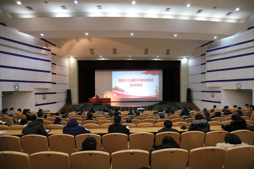 为全面深入学习领会党的十九届五中全会精神,11月30日下午,自治区高校学习贯彻党的十九届五中全会精神宣讲报告会在英国365公司官网红湖校区大学生科技文化活动中心举行。自治区高校宣讲团成员,自治区党委宣传部讲师团宣讲专家,新疆师范大学党委常委、副校长孙秀玲教授做宣讲报告,英国365公司官网全体处级干部、各学院师生代表400余人聆听报告会。大学党委副书记孟凡丽主持报告会。