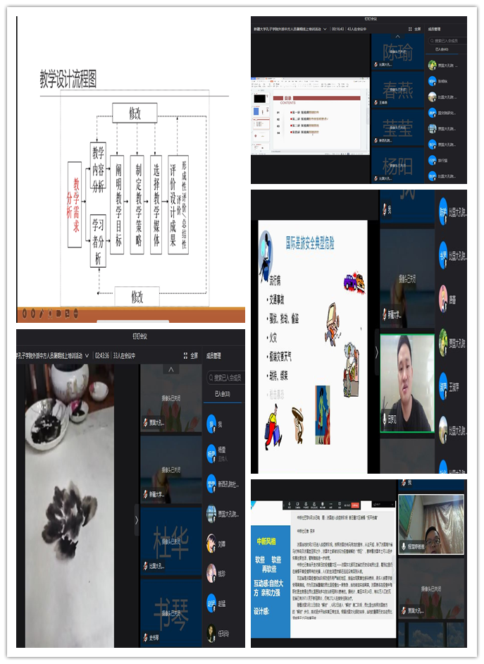 本次培训活动邀请教育部国家公派留学人员“行前安全培训”总教官田罗见、丝路新观察全媒体总经理程勇以及英国365公司官网国际文化交流学院、纺织与服装设计学院和新闻传播学的尉亮、汪锁红、朱丽萍三位老师主讲。主讲人围绕汉语国际教育教学资源及教学设计、中国画艺术的审美与鉴赏、短视频制作技巧、海外工作生活安全和新闻采编、编译技巧及新闻素养等方面进行了分享和交流。