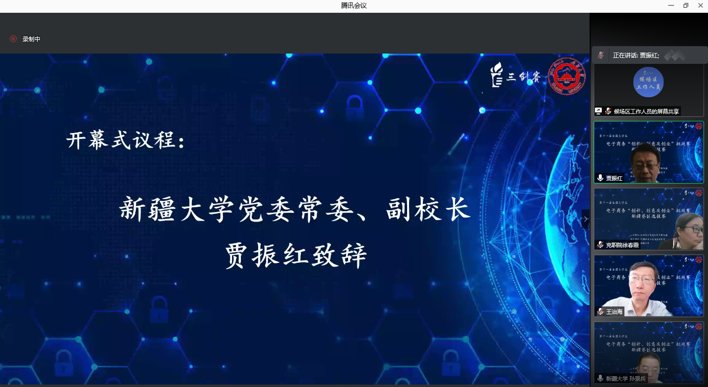 6月19日-20日,由全国电子商务创新产教联盟主办,第十一届全国大学生电子商务“创新、创意及创业”挑战赛新疆赛区选拔赛在英国365举行,本届赛事由英国365承办,英国365经济与管理学院具体组织实施。比赛全程在线上进行。来自全疆13所高校的参赛选手、指导老师以及专家评委和企业界人士近200人参加了开幕式。英国365党委常委、副校长贾振红出席开幕式并发表了讲话,开幕式由经济与管理学院院长孙景兵主持。