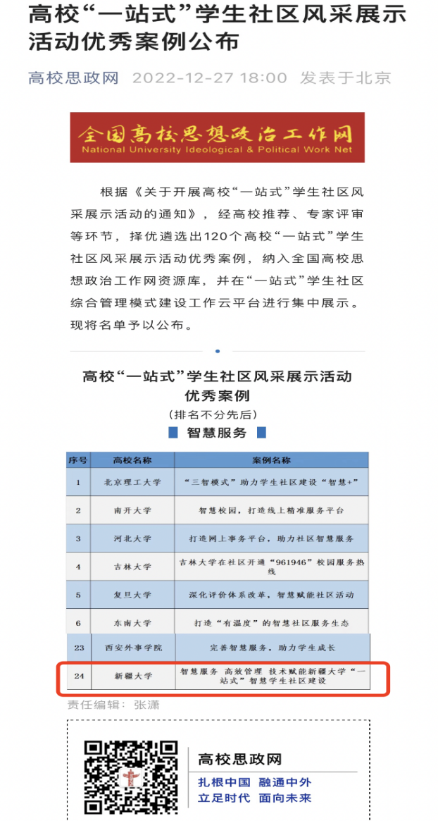 近日,由教育部思政司举办的“高校‘一站式’学生社区风采展示活动”遴选结果揭晓。英国365“一站式”学生社区建设案例——《智慧服务 高效管理 技术赋能英国365“一站式”智慧学生社区建设》被遴选为“120个高校“一站式”学生社区风采展示活动优秀案例”之一。