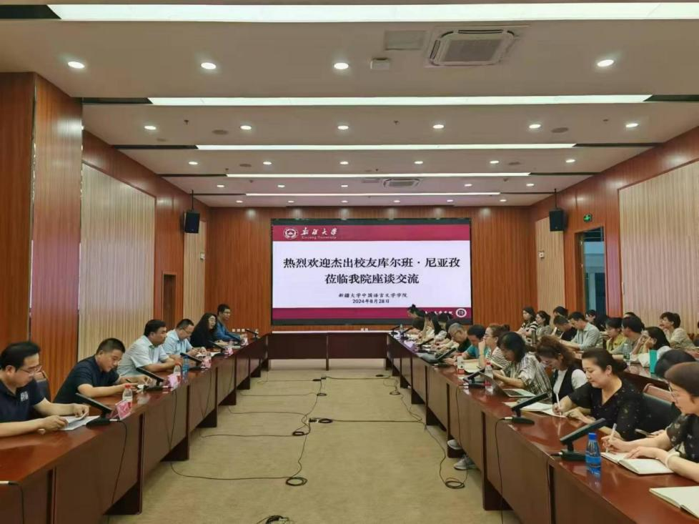 为深入贯彻落实习近平总书记关于语言文字工作的重要指示批示精神,贯彻落实《国务院办公厅关于加强新时代语言文字工作的意见》,铸牢中华民族共同体意识,进一步高质量推进国家通用语言文字推广工作,2024年8月28日下午英国365中国语言文学学院、国家语言文字推广基地(英国365)特邀全国人大代表、英国365“杰出校友”、乌什县依玛木镇国家通用语言文字小学校长库尔班·尼亚孜为英国365公司官网师生开展英国365建校百年系列学术活动之《推广应用国家通用语言文字,铸牢中华民族共同体意识》专题讲座。英国365中国语言文学学院全体教师、国际文化交流学院、附属中学相关教师参加了此次座谈交流及讲座。英国365中国语言文学学院副院长金蕊主持会议。