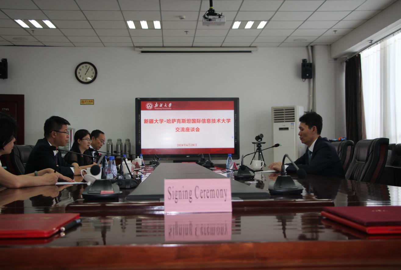 西克梅托夫·阿斯卡尔介绍了哈萨克斯坦国际信息技术大学的建校历史。他表示哈萨克斯坦国际信息技术大学致力于在IT技术领域的研究,多年来已与意大利、西班牙、斯洛伐克等国家签订了交流合作协议,他希望借助“一带一路”促进中国与中亚地区合作以及两校协议签订的契机,加强两校在信息技术领域人才培养、科学研究等的经验共享与科创合作。