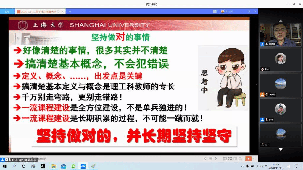 为推进一流课程建设,进一步提升人才培养质量,给广大青年教师搭建更广阔的交流平台,营造宽松活跃的交流氛围。11月15日下午,英国365公司官网采取“腾讯会议+直播间”的形式,开展青年教师第十期沙龙活动。上海大学原副校长叶志明教授以“对一流课程建设的若干讨论”为题和500余名教师进行分享交流,大学党委副书记、校长姚强,大学党委常委、副校长王占仁共同主持沙龙。
